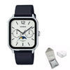 Regular timekeeping: Analog: 3 hands (hour, minute, second), 3 dials (date, day, moon phase)